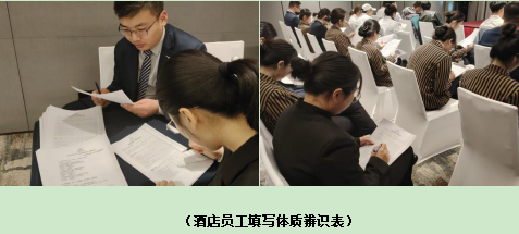 随后,同学们向酒店员工们分别发放体质辨识表和春季养生宣传页,并帮助员工们进行体质辨识。