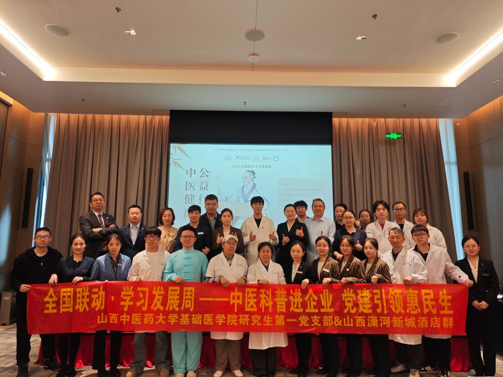 为深入推进党建与专业实践深度融合,弘扬中医药传统文化,服务基层群众与企业职工身心健康,2026年4月2日下午,山西中医药大学基础医学院研究生第一党支部组织走进山西潇河新城酒店群,开展“全国联动・学习发展周 —— 中医科普进企业,党建引领惠民生”主题公益活动。